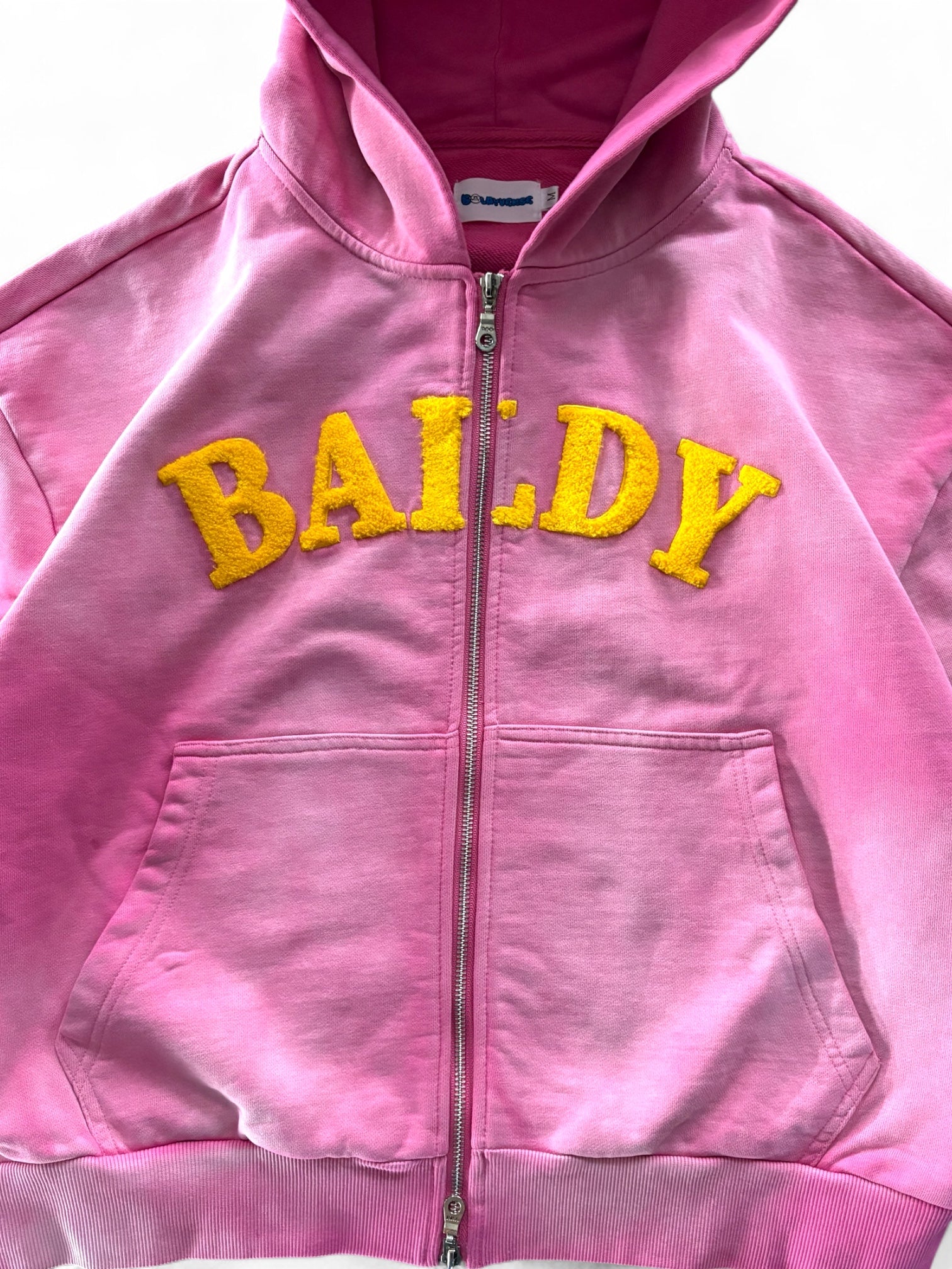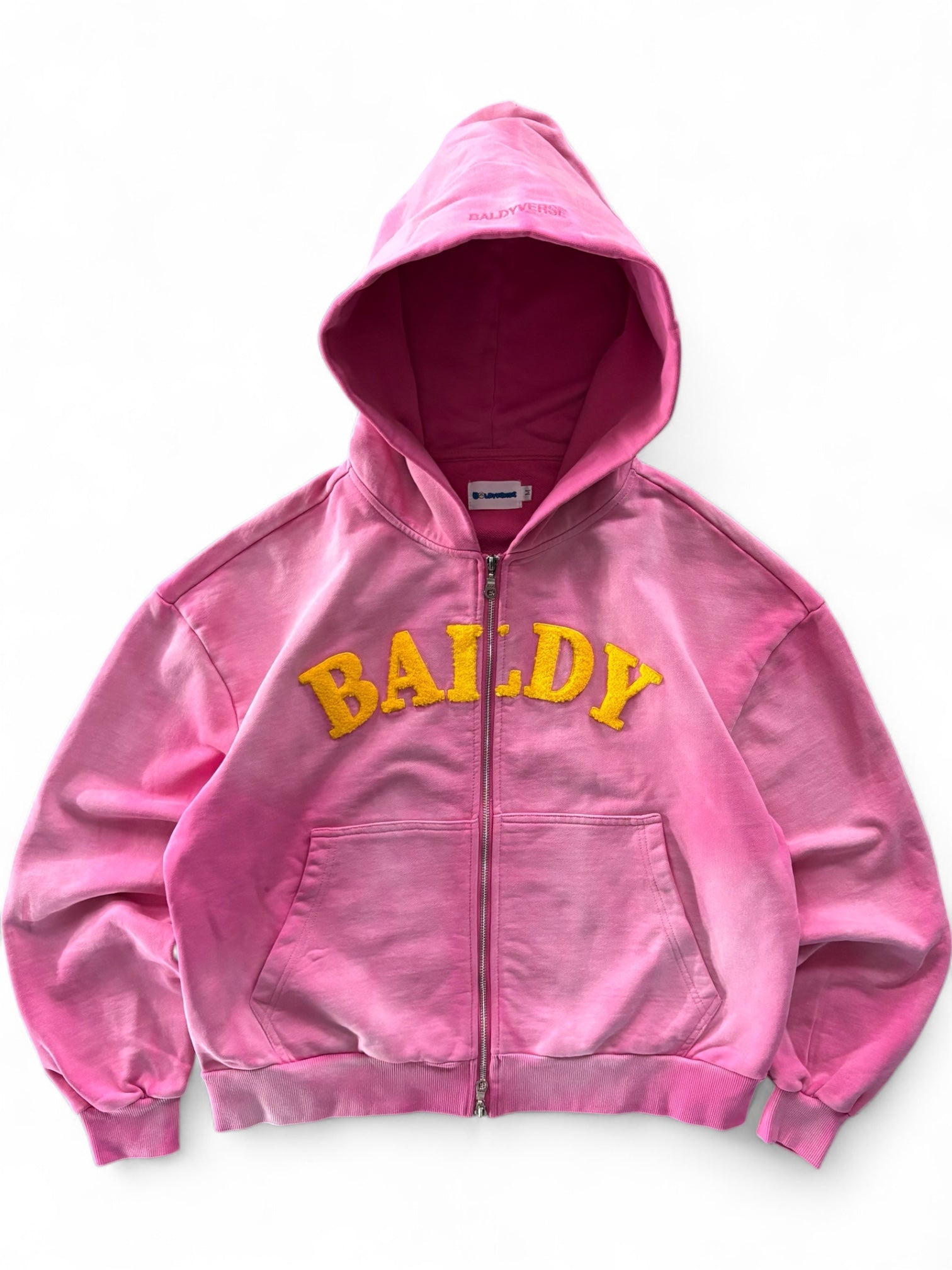 - Embossed "Baldy" appliqué print with Baldyverse hood detail