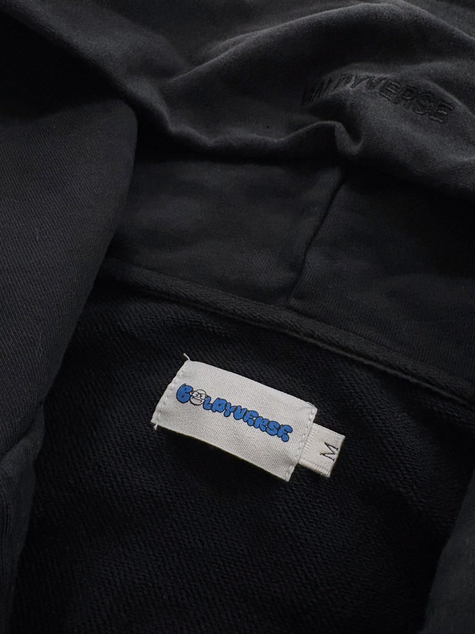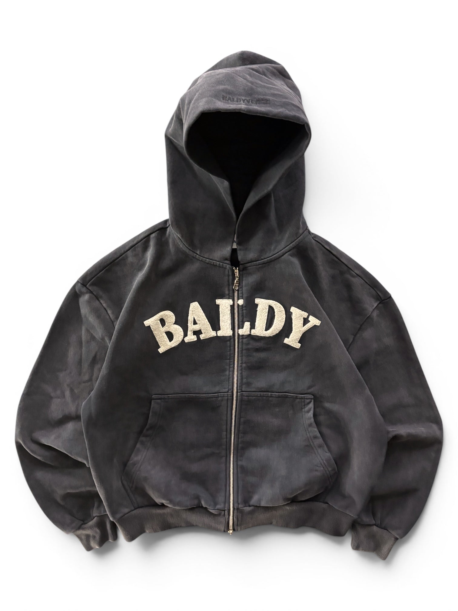 - Embossed "Baldy" appliqué print with Baldyverse hood detail